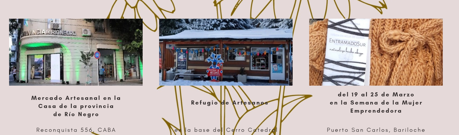 durante este mes de Marzo, encontranos en las tiendas físicas de Buenos Aires, Bariloche y en la Semana de la Mujer Emprendedora, del 19 al 25, en el Puerto San Carlos ubicado en la Av. Juan Manuel de Rosas, 71